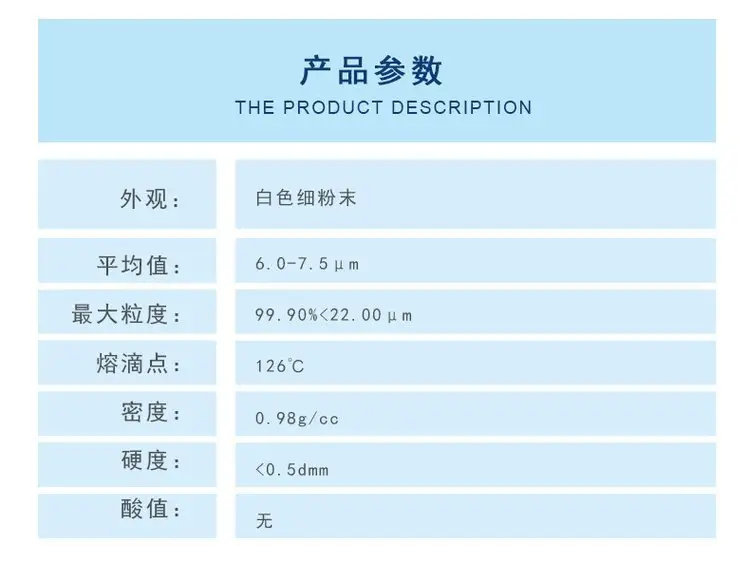 成 分:微粉化聚四氟乙烯改性聚乙烯均聚物