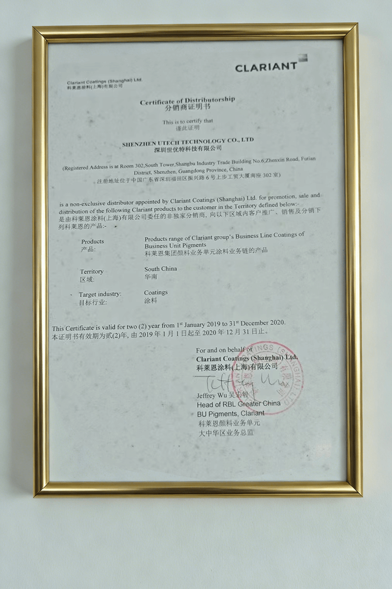 我们与多家国际知名供应商建立了长期稳定的合作关系,包括美国霍尼韦尔聚乙烯蜡、德国辉柏赫颜料和色浆、马来西亚意慕利聚酯蜡以及江西优润公司铝银浆和助剂等。这些优质的原材料为我们生产高性能的产品提供了坚实的基础。 未来,世优特科技将继续秉承“诚信为本,创新致远,合作共赢”的经营理念,不断提升自身的技术实力和服务水平,为客户提供更加优质、高效的产品和服务。我们期待与更多的合作伙伴携手共进,共创美好未来!