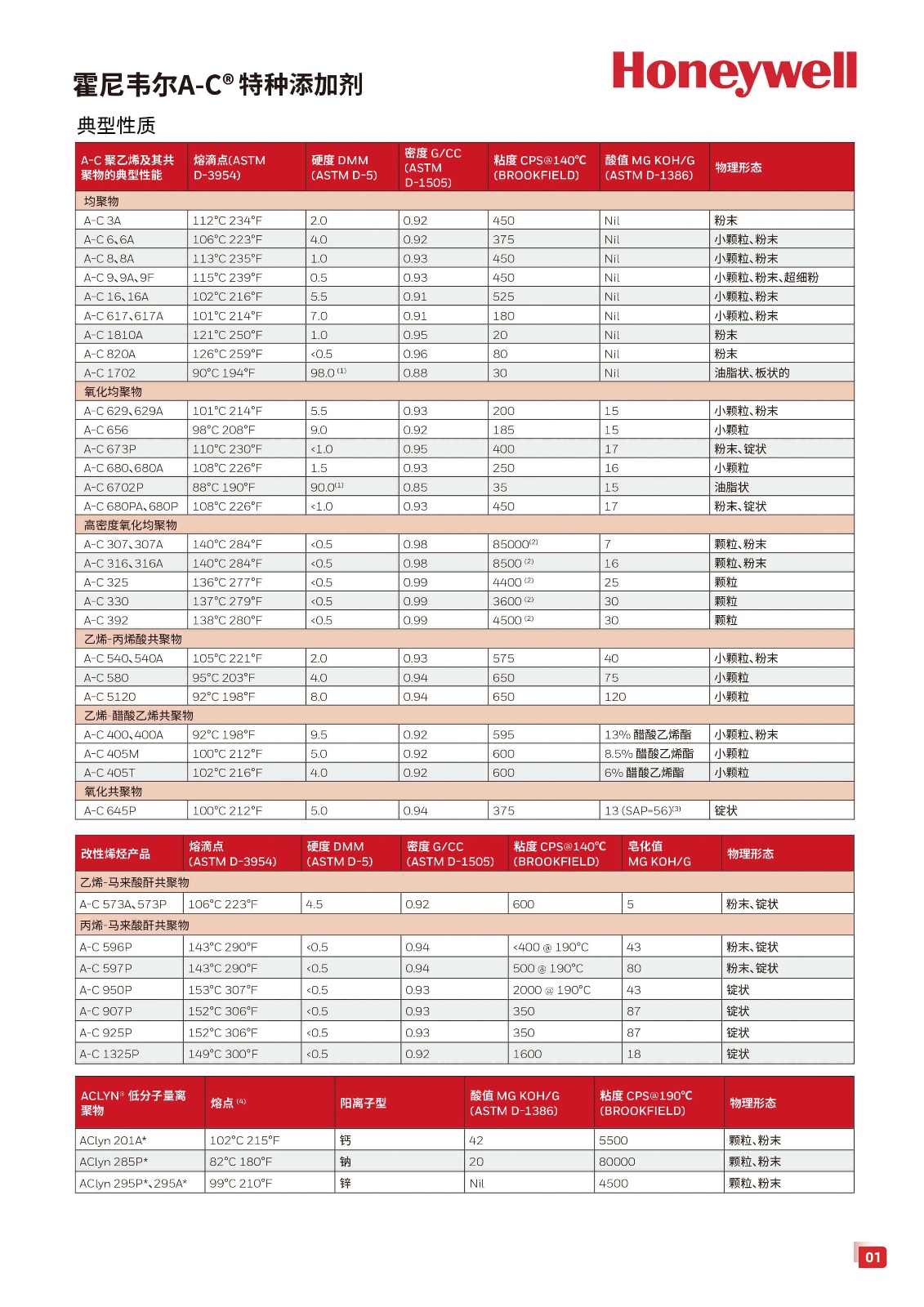 霍尼韦尔A-C® 高性能添加剂塑料橡胶应用
